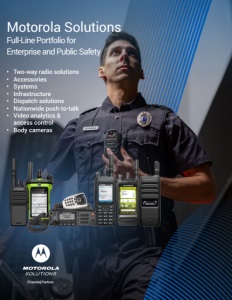 Motorola Solutions Full-Line Portfolio for Enterprise and Public Safety • Two-way radio solutions • Accessories • Systems • Infrastructure • Dispatch solutions • Nationwide push-to-talk • Video analytics & access control • Body cameras